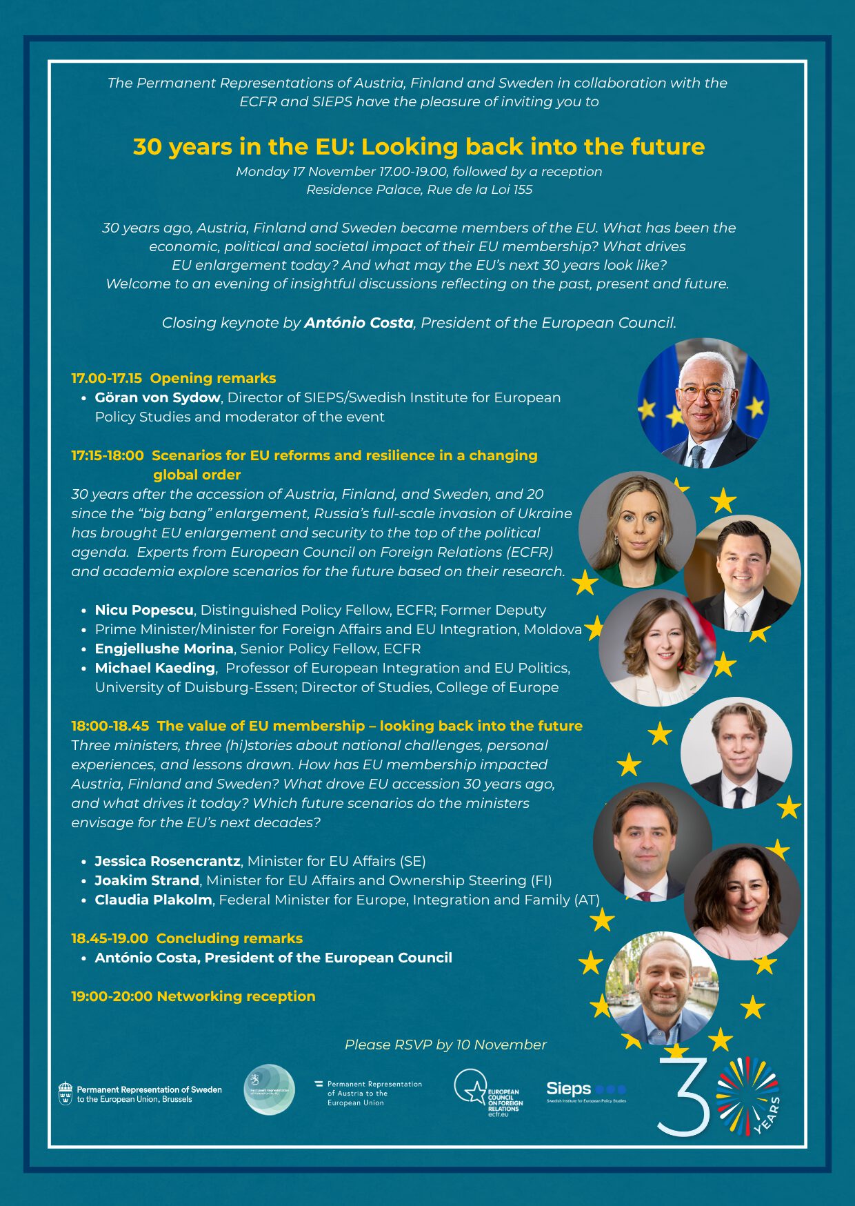Anlässlich des 30-jährigen EU-Beitritts Österreichs, Finnlands und Schwedens findet am Montag, dem 17. November 2025, von 17:00 bis 19:00 Uhr das...