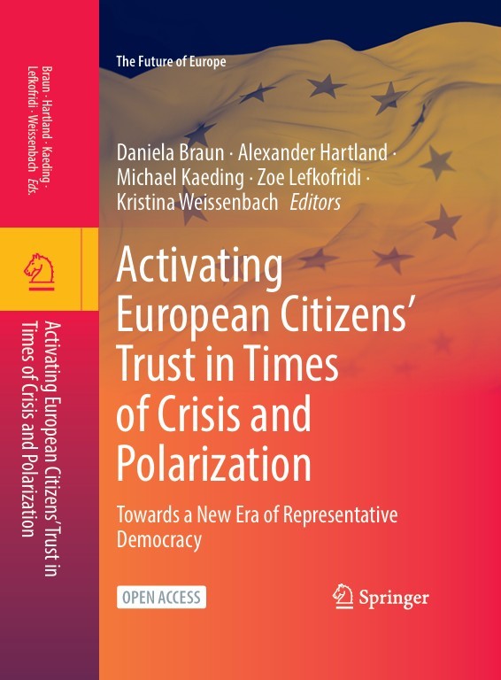 Im April 2026 erscheint der neue englischsprachige Sammelband mit dem Titel „Activating European Citizens’ Trust in Times of Crisis and Polarization: Towards a New Era of Representative Democracy“ im Springer Verlag. Herausgegeben wird das Werk von Prof. Dr. Michael Kaeding (Institut für Politikwissenschaft, Universität Duisburg‑Essen), gemeinsam mit Prof. Dr. Daniela Braun (Gesellschaftswissenschaftliche Europaforschung, Universität des Saarlandes), Dr. Alexander Hartland (Gesellschaftswissenschaftliche Europaforschung, Universität des Saarlandes), Dr. Zoe Lefkofridi (Fachbereich Politikwissenschaft, Universität Salzburg) und Dr. Kristina Weissenbach (Institut für Politikwissenschaft, Universität Duisburg-Essen).